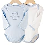 - Lot de 2 bodies assortis en interlock 100% coton. - Lavable en machine à 30°c. - Le premier uni bleu ciel avec motif texte Sportif comme papa imprimé sur le milieu devant et l'autre uni blanc avec biais contrastés coloris bleu ciel. - Manches longues avec emmanchures américaines