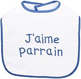 Bavoir bebe brode "J'aime parrain" blanc/bleu
